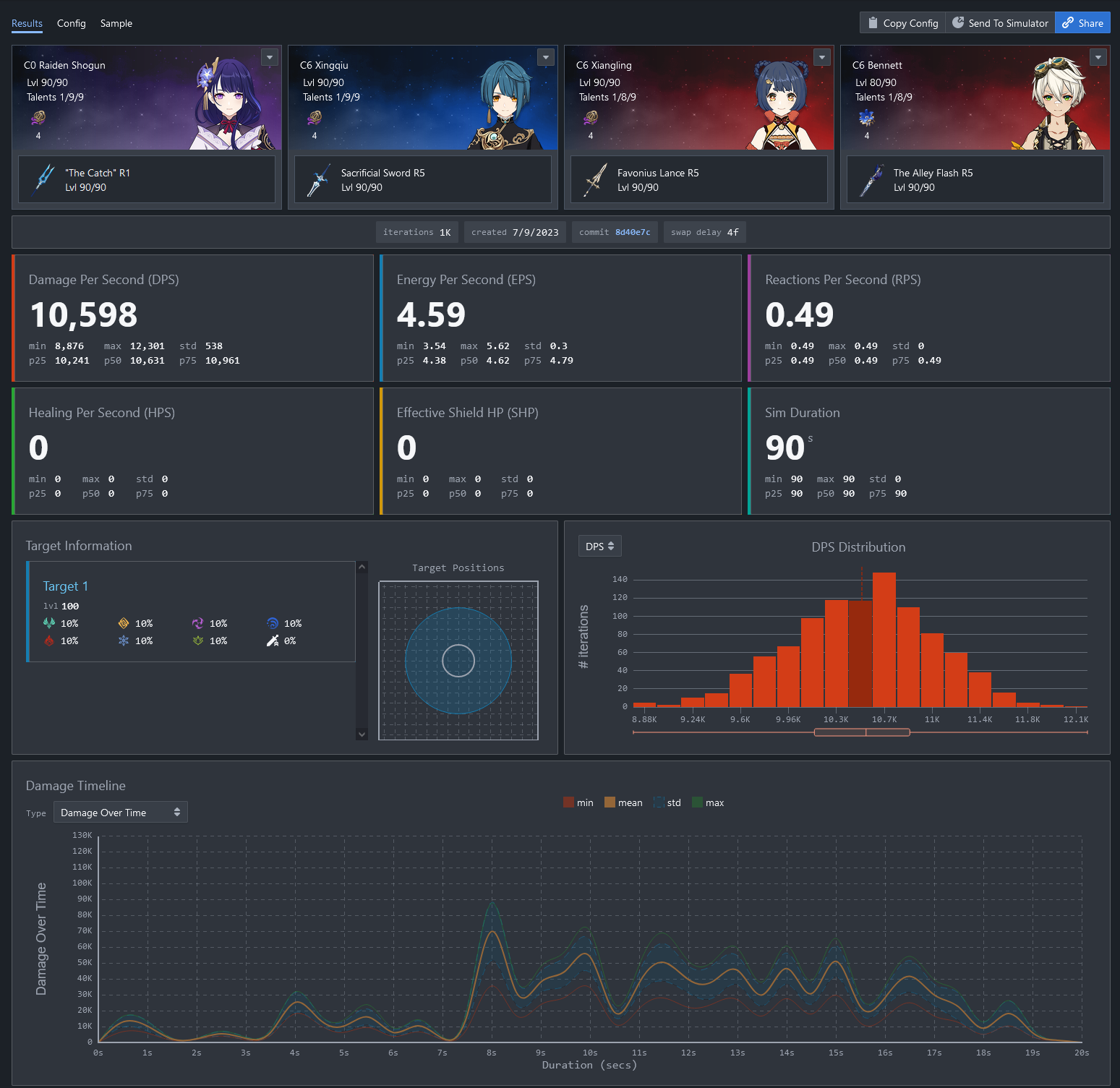 This will be a basic tutorial on how to build your own simulation from scratch. The team we'll be simulating is the ever popular Raiden/Xiangling/Xingqiu/Bennett team.