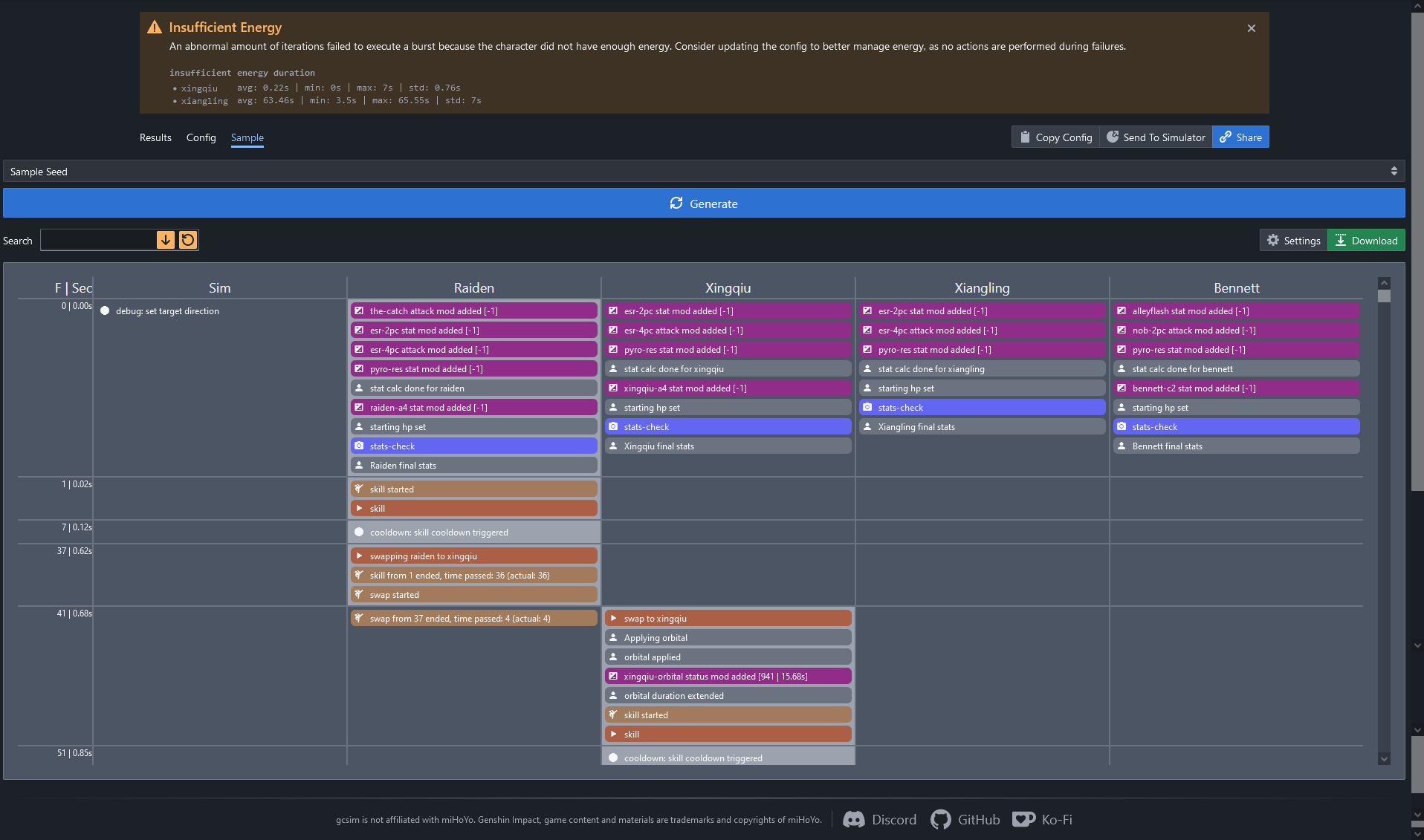 One of the biggest issue first time gcsim users run into is lack of energy on their team. Often we get users coming into our discord asking why when they simulate their own team, their dps is so low. Turns out that most of the time their team is not running enough ER.