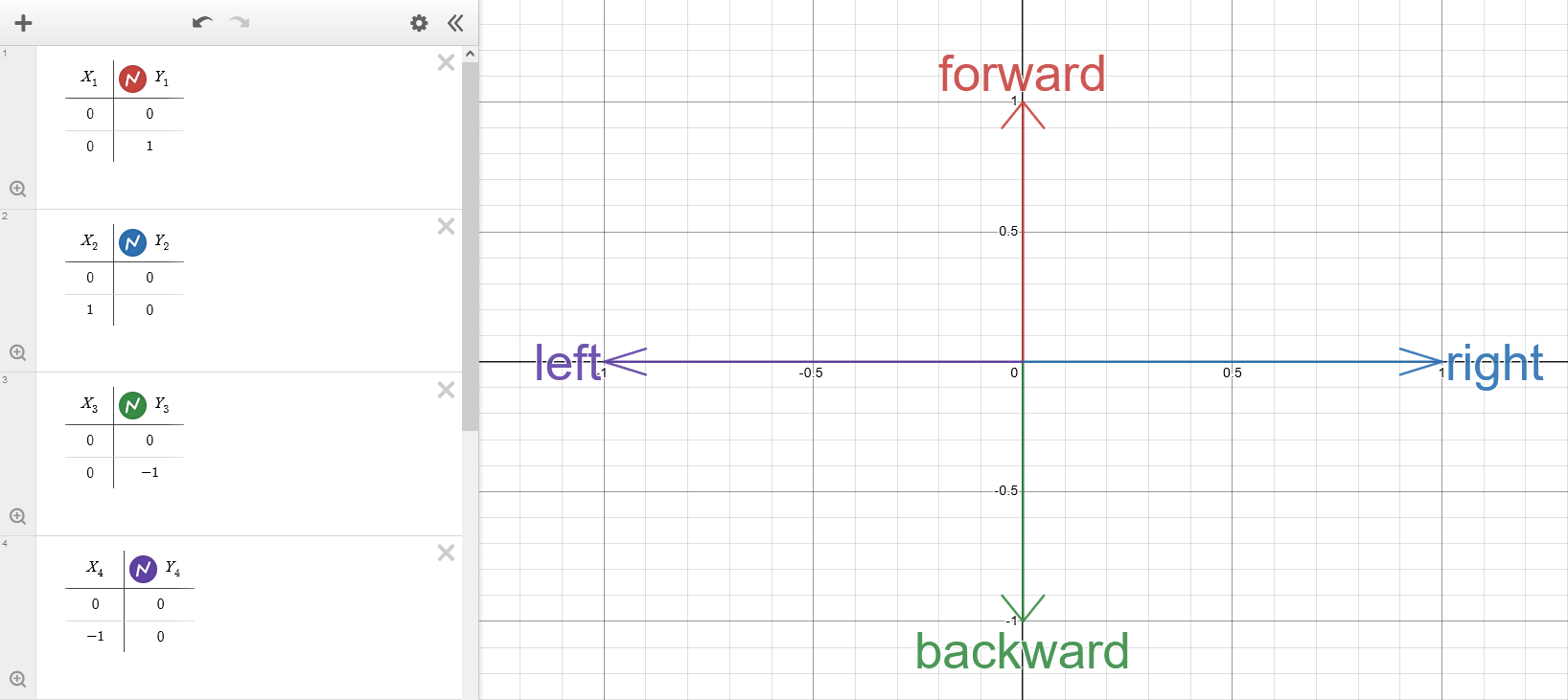 gcsim is using a 2D coordinate system that follows the Cartesian coordinate system. That means every point in space can be uniquely identified by a combination of its x and y coordinate values.