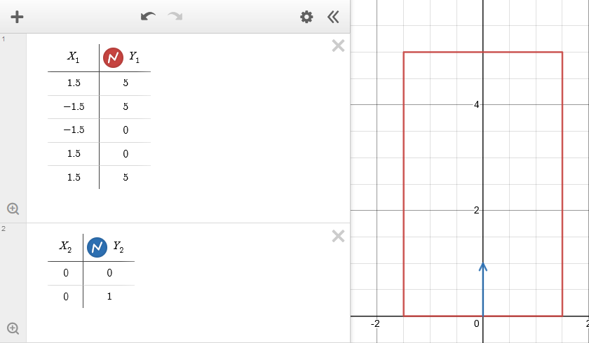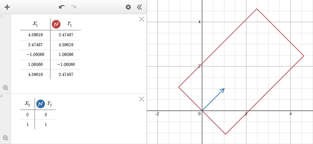 Example for a 3m x 5m rectangle with the center at (0, 0) and a direction of (1, 1) (45°):